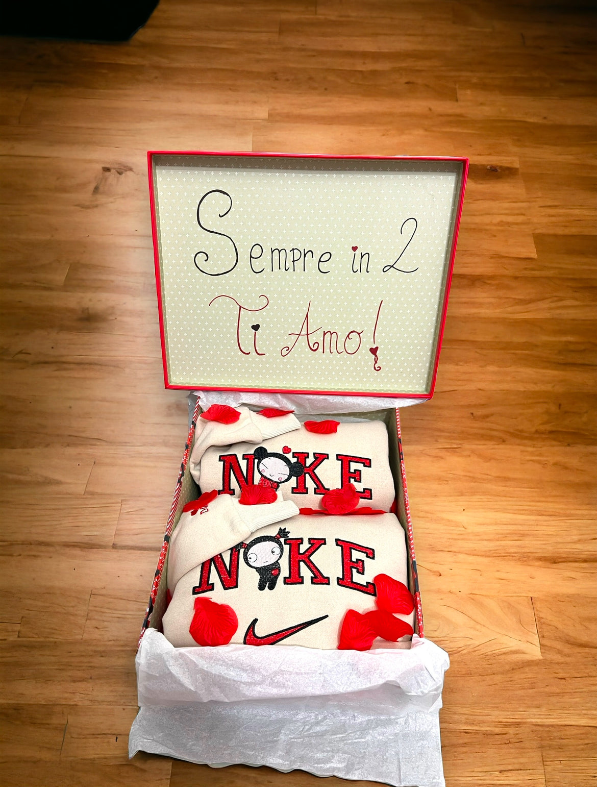 BOX IN CARTONE RIGIDO,CON PERSONALIZZAZIONE FRASE,PETALI DI ROSA